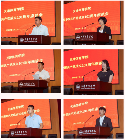 会上,党委常委、党委组织部部长叶加宝,体育教育与教育科学学院副院长戚克敏,马克思主义学院教师安明焘,体育教育与教育科学学院体操武术教研室党支部书记、主任崔荔,体育教育与教育科学学院辅导员苏俊豪,体育文化学院学生贾锦丰结合自身工作和学习实际,分别进行了交流发言。