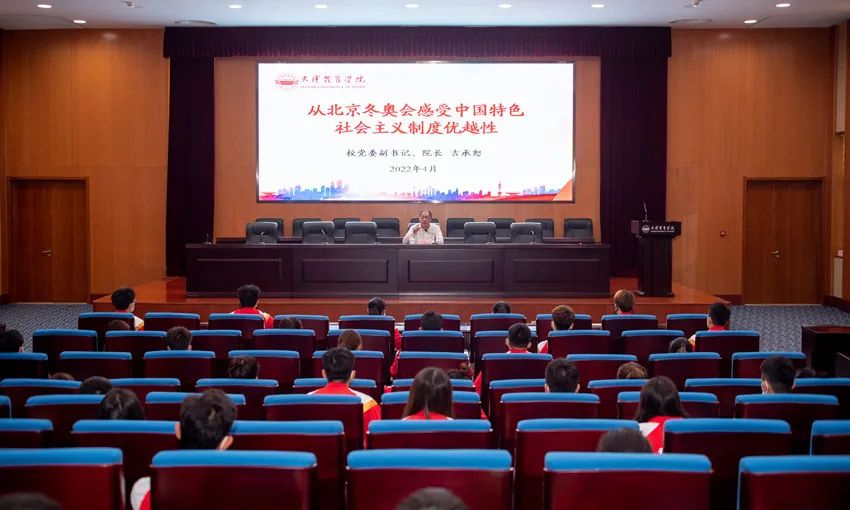 4月28日,党委副书记、院长吉承恕为威尼斯大学生讲授了题为“从北京冬奥会感受中国特色社会主义制度优越性”的形势与政策第一课。