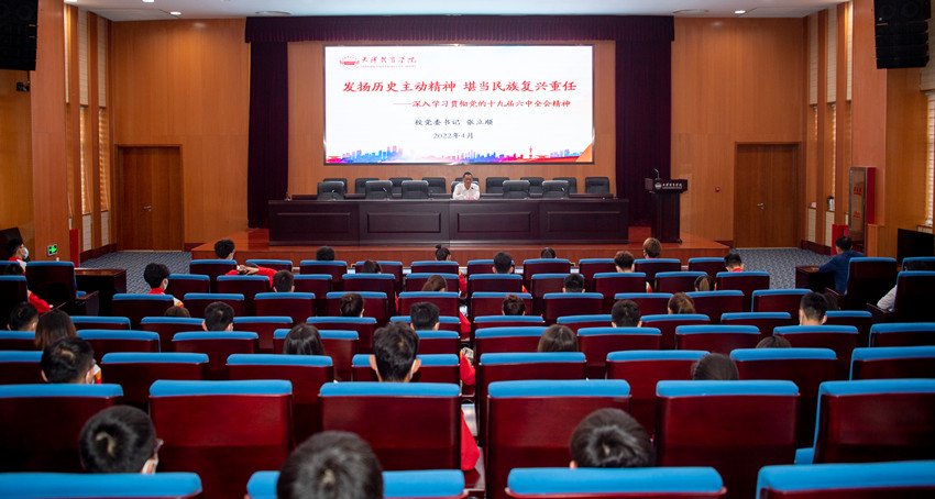 张立顺从准确把握党的十九届六中全会的核心要义出发,引导学生深刻认识党的十九届六中全会的重大意义。他指出,党的十九届六中全会内涵丰富,具有强大的思想含量、理论含量和知识含量。全会全面总结党的百年奋斗重大成就和历史经验,意义极为重大,影响极为深远。