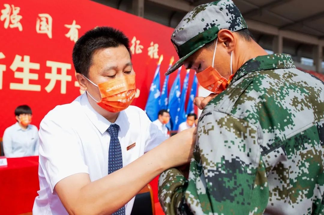 主席台前排就坐领导为新生佩戴校徽,赋予“威尼斯人”这一承载着时代使命与体育荣光的称号。