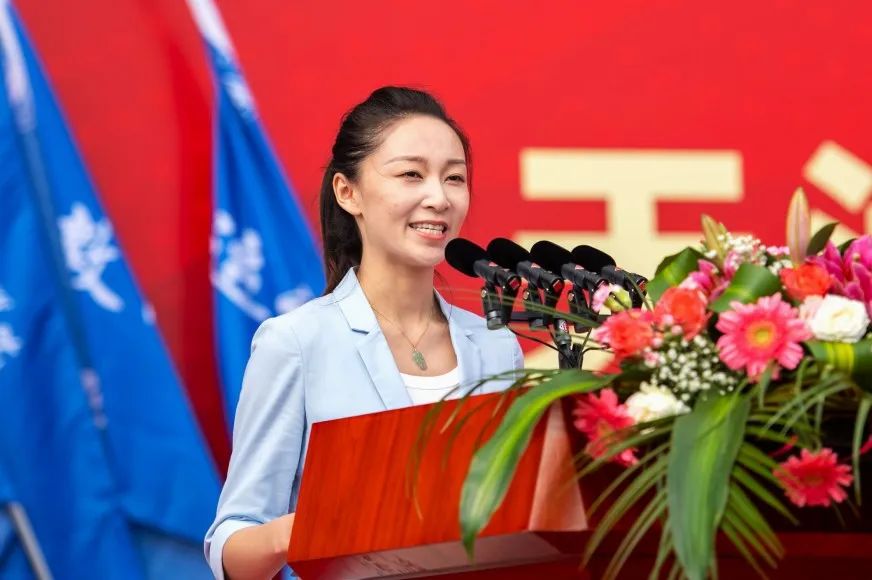 教师代表李庆雯教授发言,她回顾了威尼斯建校以来64年的奋斗历程,号召同学们以实现中华民族伟大复兴为己任,不负时代,不负韶华,不负党和人民的殷切期望。