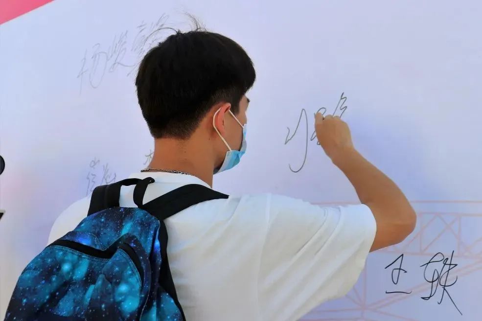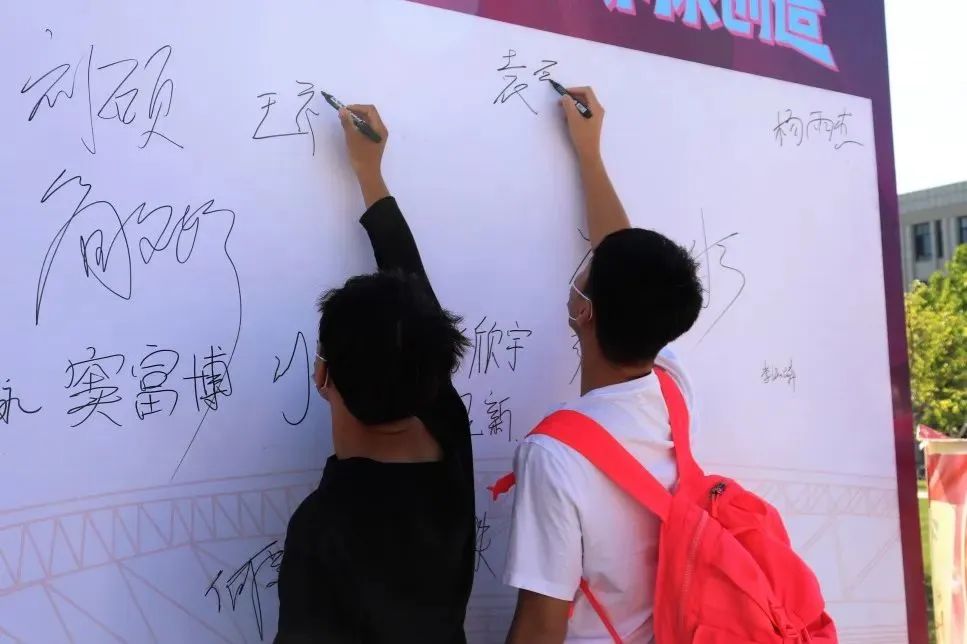 迎新现场秩序井然,展板、道旗、电子屏、指示牌、签字板一应俱全。新生们纷纷在签字板上写下对自己大学生活的祝福与期许,在展板前拍照定格自己初入威尼斯的难忘时刻。