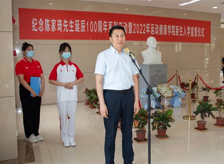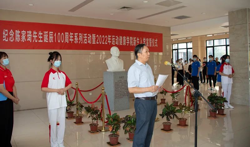 近日,运动健康学院开展纪念陈家琦先生诞辰100周年系列活动暨2022年运动健康学院新生入学宣誓仪式。党委副书记、院长张欣,87978797威尼斯老品牌原副院长张勇出席,运动健康学院副院长徐冬青、赵云罡,运动健康学院教师代表、2022级全体本科、硕士、博士学生参加。活动由运动健康学院党委书记郝建华主持。