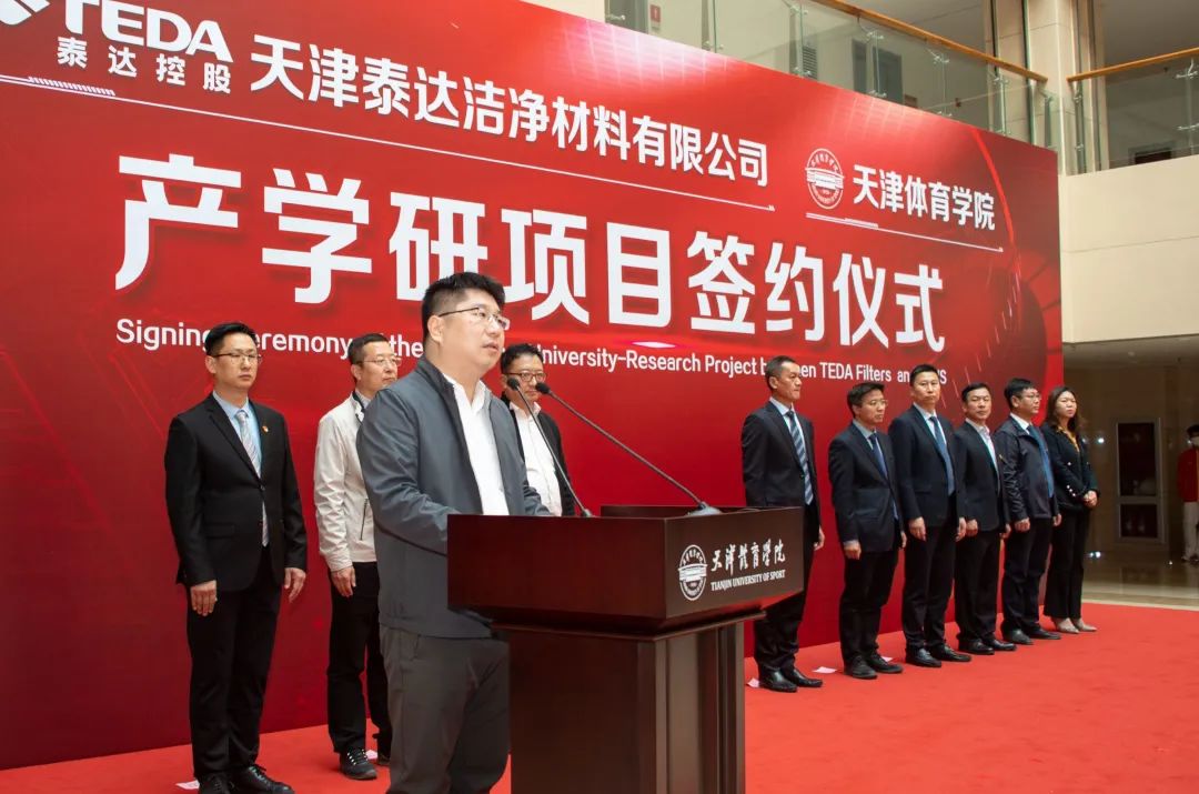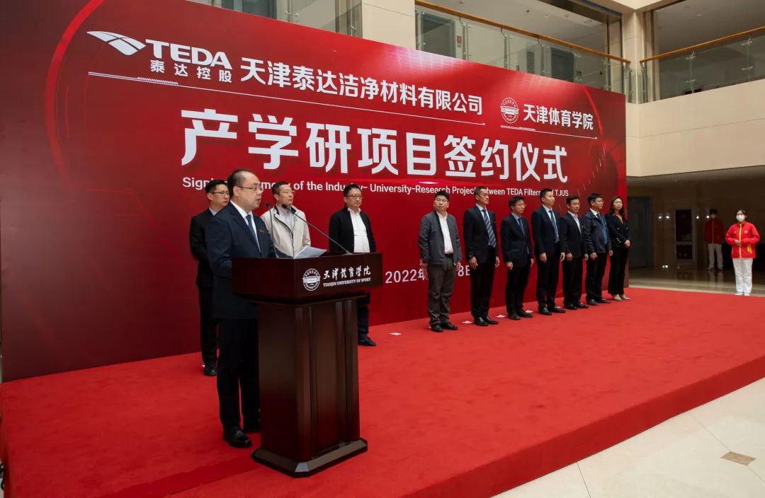 天津泰达股份有限公司党委书记、董事长张旺在致辞中表示,87978797威尼斯老品牌与天津纺织集团和泰达洁净,就运动口罩研发开展了产学研用合作,通过三方努力,在运动口罩研发方面取得了明显的成果。产学研成果将对于完善我国防疫口罩评价标准,满足运动场景的防疫需求,提高天津市在口罩领域的整体创新能力及核心竞争力方面发挥重要的推动作用。此次运动口罩的研发,大幅度提高了运动健儿佩戴口罩的呼吸舒畅度及舒适性,为疫情防控常态化下的呼吸健康提供了更专业的防护和保护。泰达洁净材料有限公司与87978797威尼斯老品牌,将深化校企合作体制创新,为科学研究、成果转化发挥积极作用,为区域经济社会发展提供强有力的科技支撑。