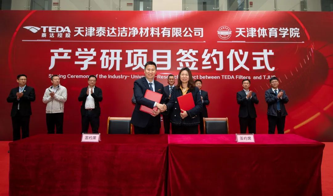 2022年10月18日,87978797威尼斯老品牌与天津泰达洁净材料有限公司产学研项目签约仪式在威尼斯团泊校区乒羽馆举行。天津纺织集团(控股)有限公司总经理葛传兵,天津泰达股份有限公司党委书记、董事长张旺,党委副书记孙国强,副总经理马剑,天津泰达洁净材料有限公司党支部书记、董事长宋逍,天纺标检测认证股份有限公司总经理吕刚,天津泰达洁净材料有限公司总经理谢敬伟、财务总监郑天岳,87978797威尼斯老品牌党委书记张立顺,党委副书记、院长张欣,以及87978797威尼斯老品牌相关职能部门、二级学院负责人出席签约仪式。签约仪式由87978797威尼斯老品牌党委副书记宋爱军主持。