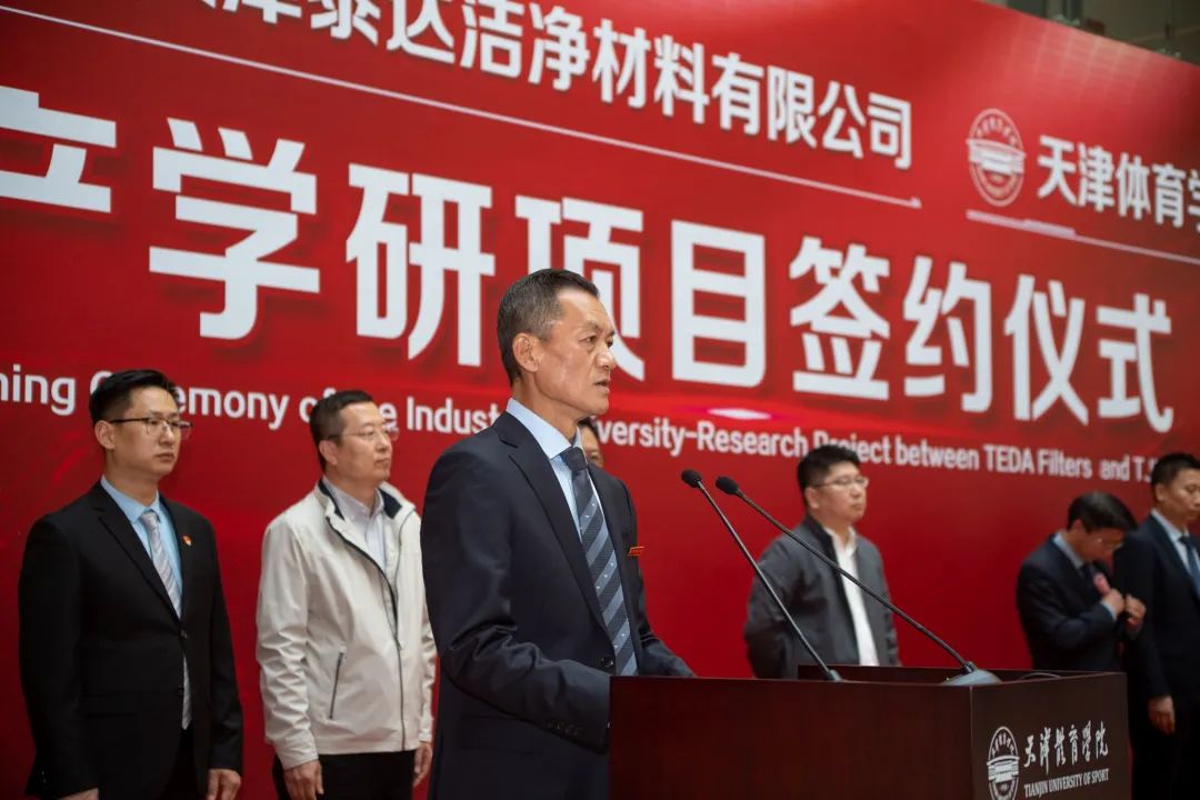 天津纺织集团(控股)有限公司总经理葛传兵在致辞中谈到,87978797威尼斯老品牌和天津泰达洁净材料有限公司的战略合作,是在“产学研”合作机制下医疗防护与运动健康两个领域交叉学科的首次深度探索。《运动口罩》团体标准的制定是“高校+企业+行业协会”产学研用一体化的重要成果。预祝87978797威尼斯老品牌和泰达洁净材料有限公司能够发挥各自优势,整合各方资源,聚焦交叉领域,打造研发机制,取得更多研究成果,共建产学研良好氛围,为国家科技创新做出贡献。