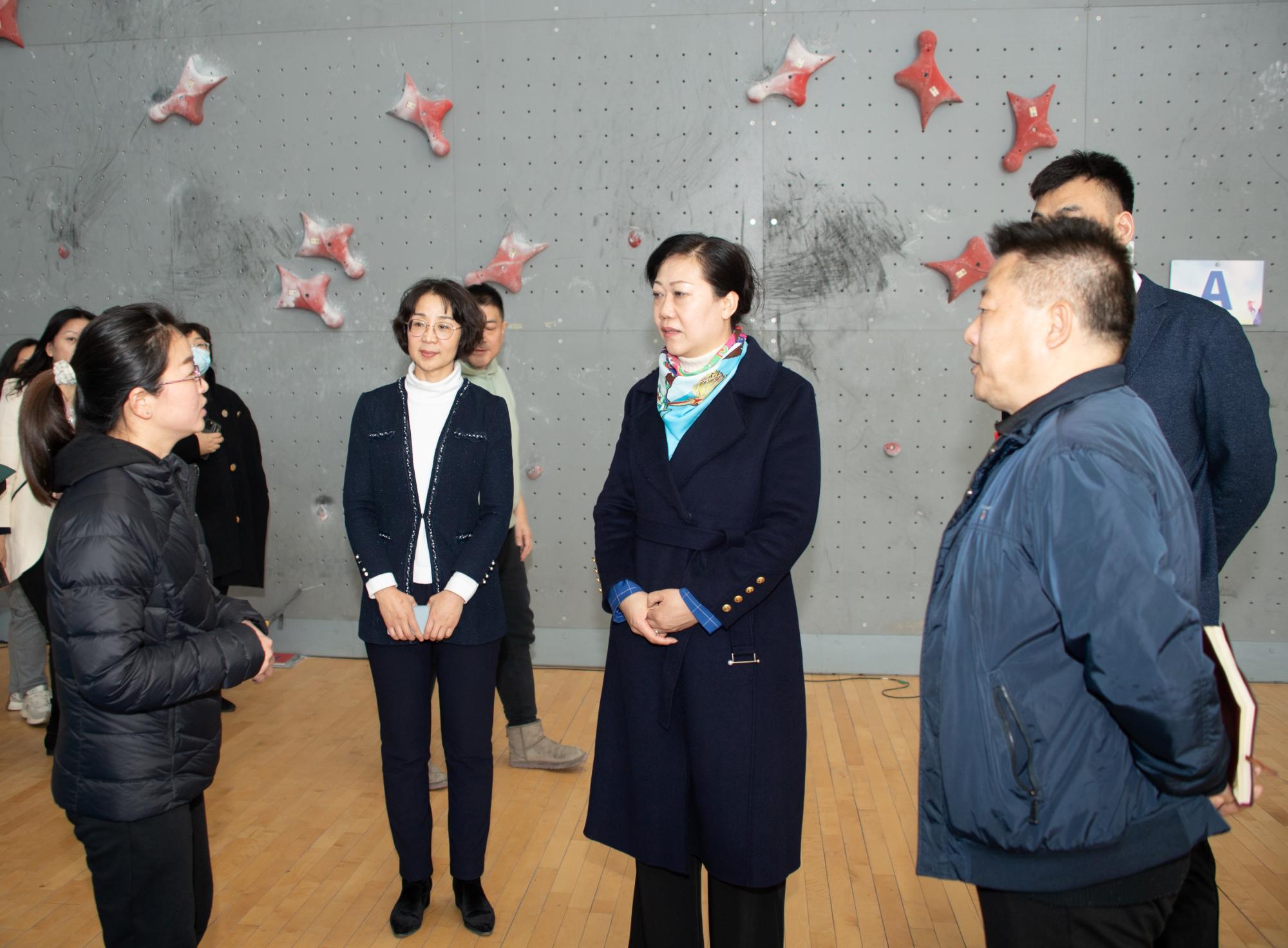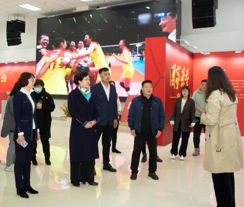 座谈后,刘炳欣一行参观了威尼斯乒羽馆、游泳馆、田径馆、攀岩馆、女排精神展。