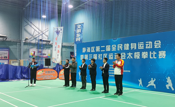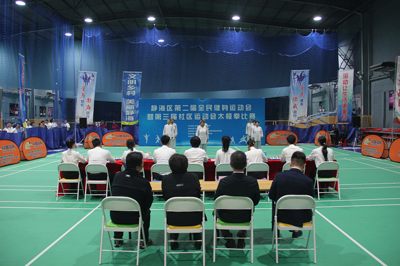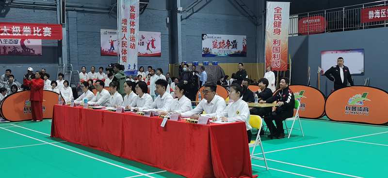 2023年5月7日,静海区第二届全民健身运动会暨第三届社区运动会太极拳比赛在天津市静海区科曼体育馆举行。受赛事组委会邀请,武术与民族传统体育学院党总支书记、院长丁保玉担任本次比赛仲裁委员会主任、副院长郝大伟担任仲裁委员会副主任,武术教研室教师解乒乒担任裁判长,教师李英杰、刘雅媚、王晓楠、霍静虹、王少宁、张蕾担任裁判员,14名大学生协助完成执裁相关工作。