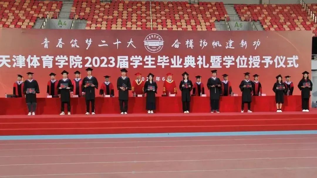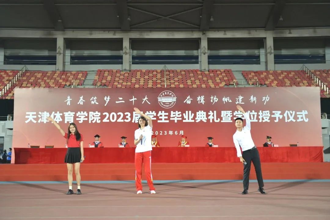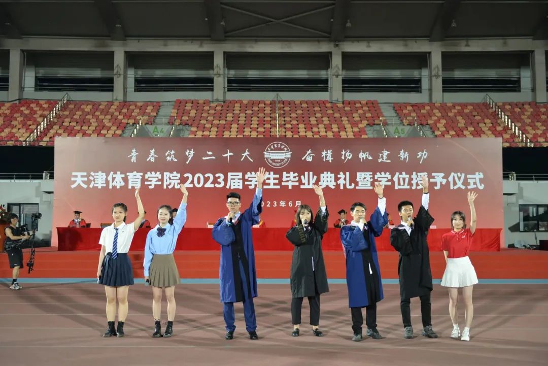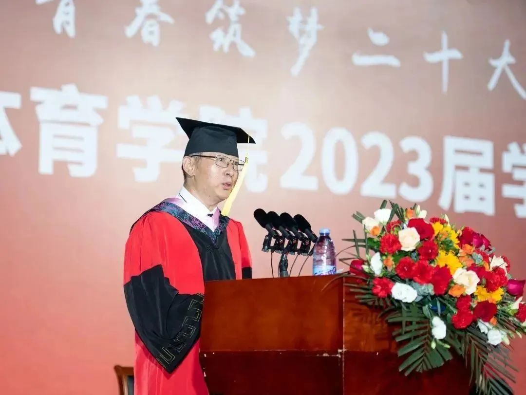 本科毕业生代表杨帆发言并带领全体毕业生庄严宣誓,号召大家与时代同行,勇担体育强国使命,为实现中华民族伟大复兴的中国梦奋斗终身。