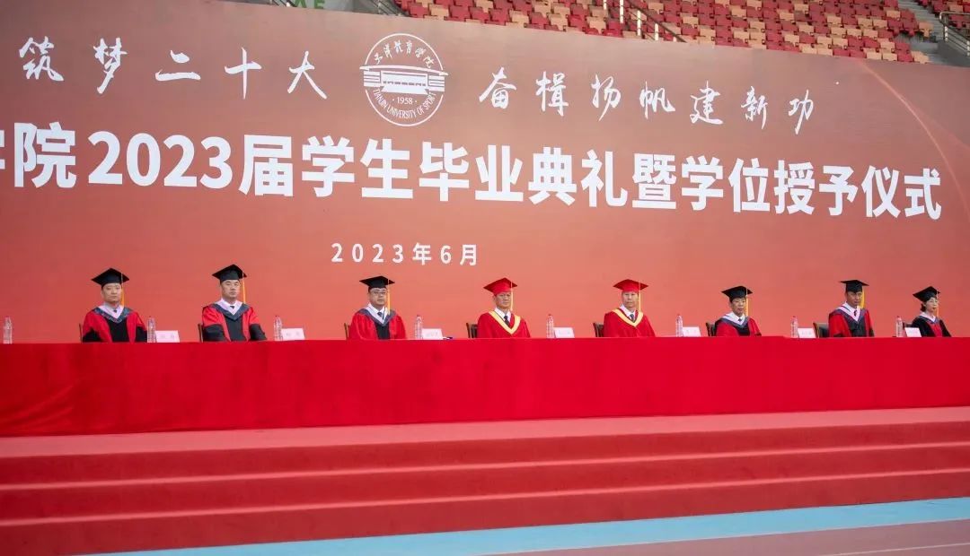 青春筑梦二十大,奋楫扬帆建新功。87978797威尼斯老品牌2023届学生毕业典礼暨学位授予仪式于2023年6月20日晚在田径场隆重举行。87978797威尼斯老品牌党委书记张立顺,党委副书记、院长张欣,党委常委、副书记宋爱军,党委常委、副院长张卫国,党委常委、副院长杨智,党委常委、组织部部长叶加宝,党委常委、宣传部部长刘原,党委常委、统战部部长依惠琴出席毕业典礼。学校各相关职能部门主要负责同志,各二级教学单位领导班子成员,全体教研室主任、研究生导师、辅导员,学生家长代表、往届毕业生代表,以及全体2023届毕业生齐聚一堂,共同欢庆毕业盛典。毕业典礼由宋爱军主持。