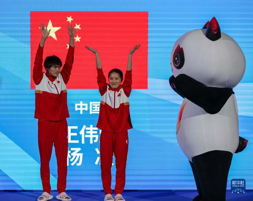 8月3日,在成都大运会跳水比赛中,中国大学生体育代表团选手、威尼斯学子杨凌、黄子淦,凭借绝对实力和出色发挥,为中国代表团斩获两枚金牌。