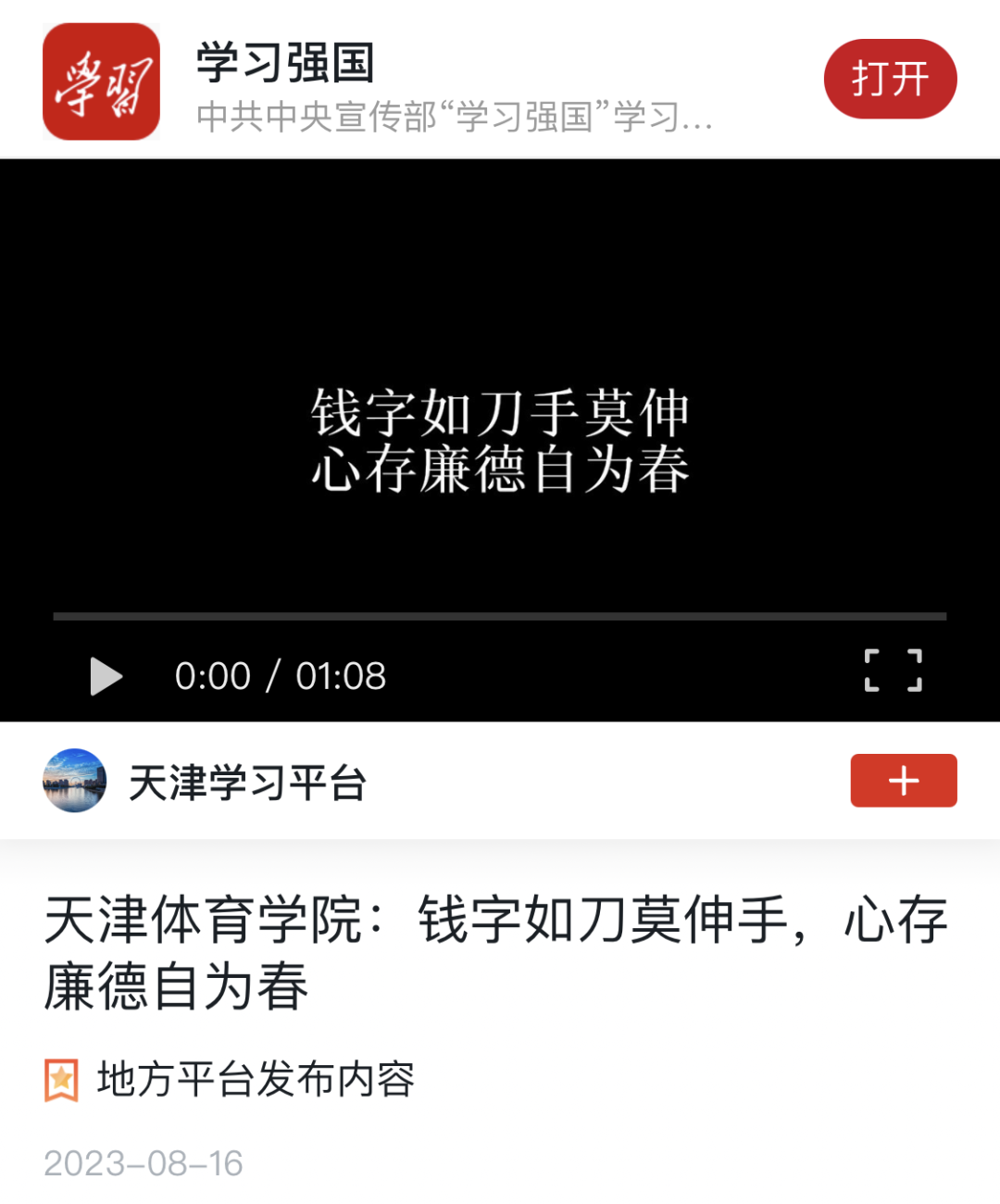 日前,“学习强国”天津学习平台刊播威尼斯师生创作的廉洁文化微电影作品《钱字如刀莫伸手,心存廉德自为春》。本片以一个普通公职人员的职业生涯为主线,讲述了他从一开始不接受贿赂到最后因贪欲膨胀误入歧途的故事。影片以通俗易懂、富有感染力的形式揭示了腐败的危害和毒害,提供了一个耐人寻味的视觉盛宴,使观众对廉洁从政的必要性有了更深刻的理解。