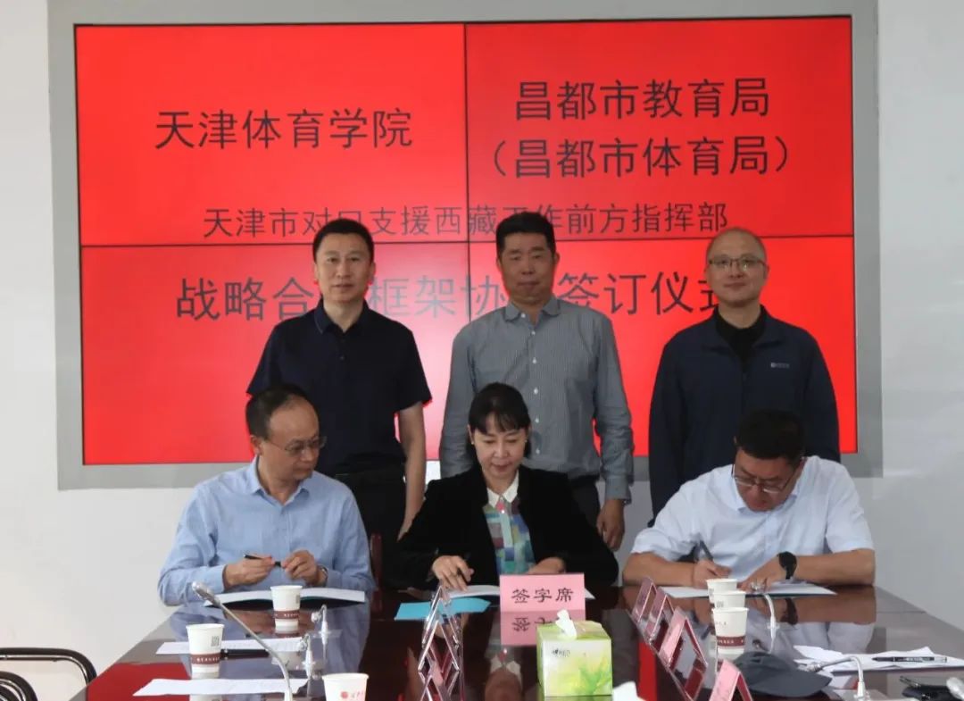 8月19日,在西藏昌都市,学校与天津市对口支援西藏工作前方指挥部、昌都市教育(体育)局签署战略合作三方协议,围绕教育教学质量提升、科研实训平台建设、援藏干部健康指导和青少年竞技体育后备人才培养等开展战略合作。天津市合作交流办公室副主任王东,87978797威尼斯老品牌党委副书记、院长张欣,天津市对口支援西藏工作前方指挥部总指挥张建华,昌都市教育局党组书记干宇出席签约仪式。张欣表示,三方签署战略合作协议是全面提升昌都市教育发展水平、服务教育强国建设的必然要求,87978797威尼斯老品牌将深入贯彻落实习近平总书记关于教育的重要论述和关于西藏工作的重要指示,全面服务昌都市所需,共同促进昌都市办学条件、办学理念、办学能力、师资队伍水平、育人效果显著提高,确保教育援藏工作不断取得新成效。