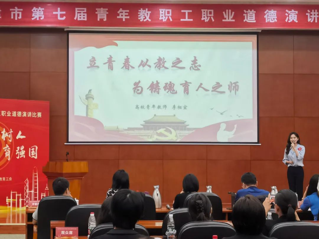 为深入学习贯彻习近平新时代中国特色社会主义思想和党的二十大精神,大力弘扬劳模精神、工匠精神,教育引导全市广大教职工涵养职业道德、建设教育强国,9月26日,天津市教育工会组织举办天津市第七届青年教职工职业道德演讲比赛,共有全市29所高校附院、16个区教育工会的44名选手参赛,威尼斯教师李相宜代表学校参赛。经过全天九个小时的赛程,李相宜在激烈的角逐中以动人的讲述风格、精湛的演讲水平、出色的现场发挥斩获一等奖。