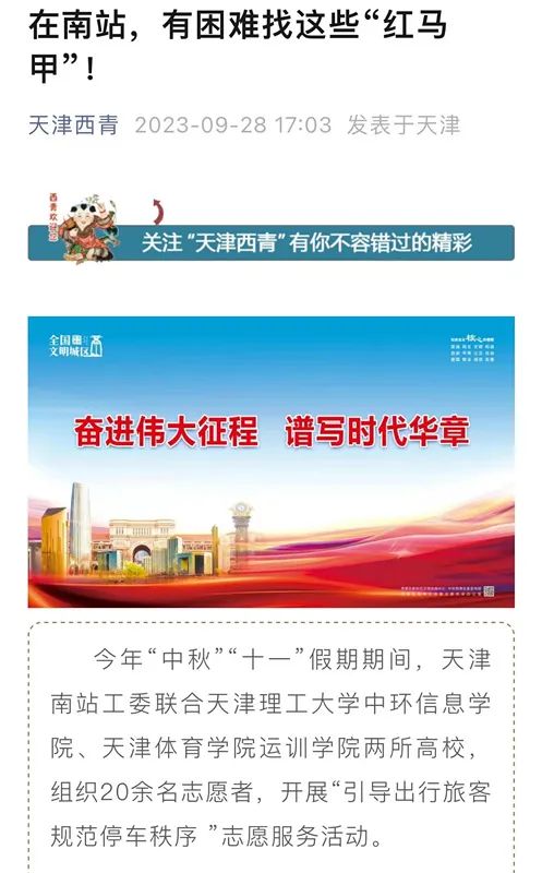 近日,威尼斯运动训练学院“思韵悠长、真理远航”理论宣讲团队志愿者在天津南站开展“引导出行旅客、规范停车秩序”等志愿服务活动,助力天津“十项行动”,保障假期旅客安全出行。北方网、西青区官方微信“天津西青”对威尼斯志愿者活动进行了报道。