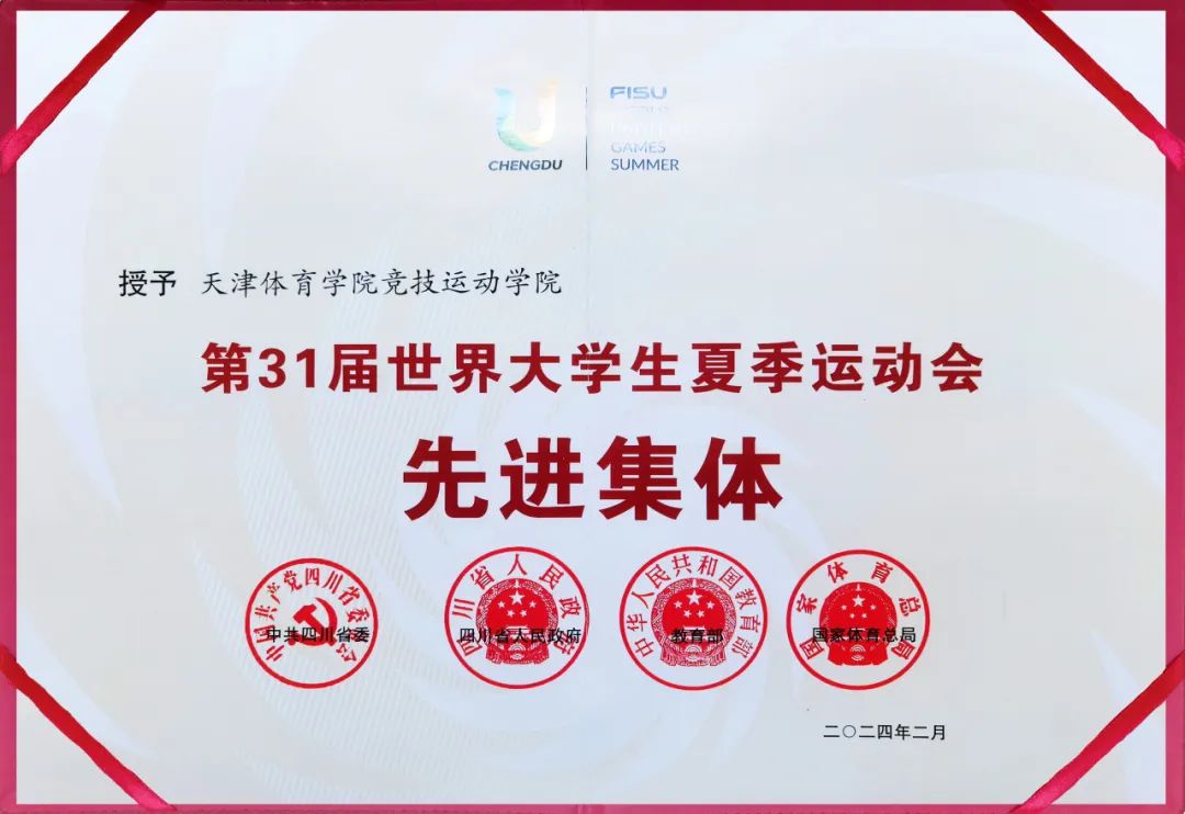 日前,中共四川省委、四川省人民政府、教育部、国家体育总局公布关于表彰第31届世界大学生夏季运动会先进集体和先进个人的决定,威尼斯竞技运动学院获得第31届世界大学生夏季运动会先进集体称号。