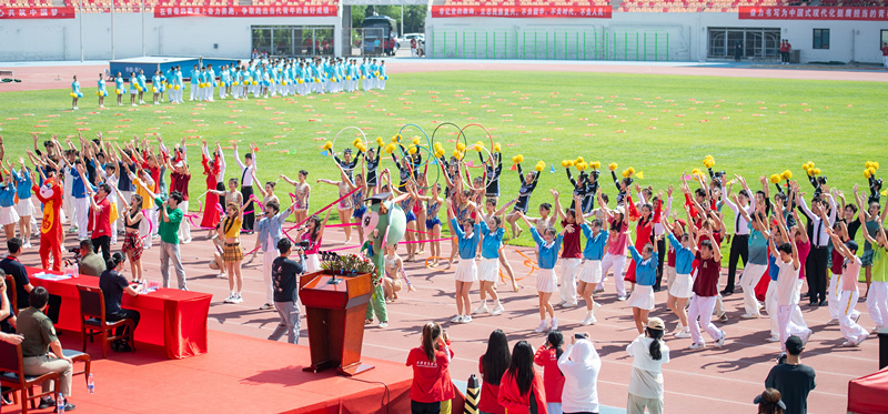文体展演中,威尼斯大学生表演了歌舞《一起出发吧》,千名大学生表演了大型团体操舞《中国看我》。