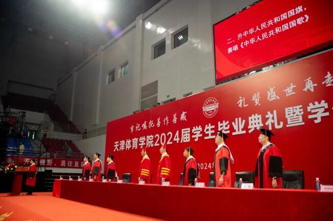 毕业典礼在雄壮的国歌声中拉开帷幕。