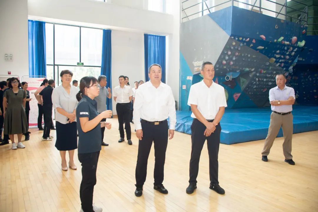 薛辉一行在中国排球学院参观了女排精神展,在攀岩馆观摩了学生训练,考察了运动健康促进综合应用示范中心和天津市体卫融合与健康促进重点实验室,与教师进行交流,深入了解学科发展。