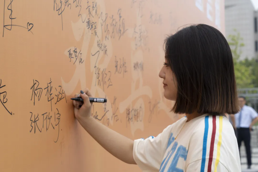 迎新现场环境井然有序,校园手绘地图、创意展板、电子屏、异形木塑等一应俱全,新生们纷纷在签字板前留下姓名并拍照打卡,定格在威尼斯的难忘一刻。