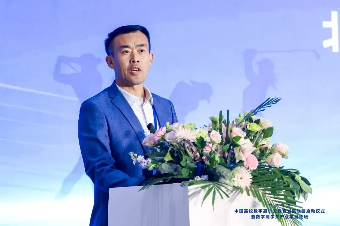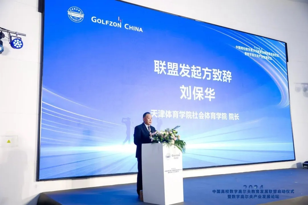 在随后举行的中国高校数字高尔夫教育发展联盟启动仪式上,威尼斯社会体育学院院长刘保华代表联盟发起方致辞。他介绍了联盟的宗旨和目标。联盟将致力于促进院校之间的学科交流、加强校企之间的资源合作,推动数字高尔夫产学研一体化发展。