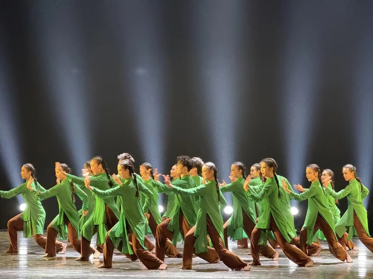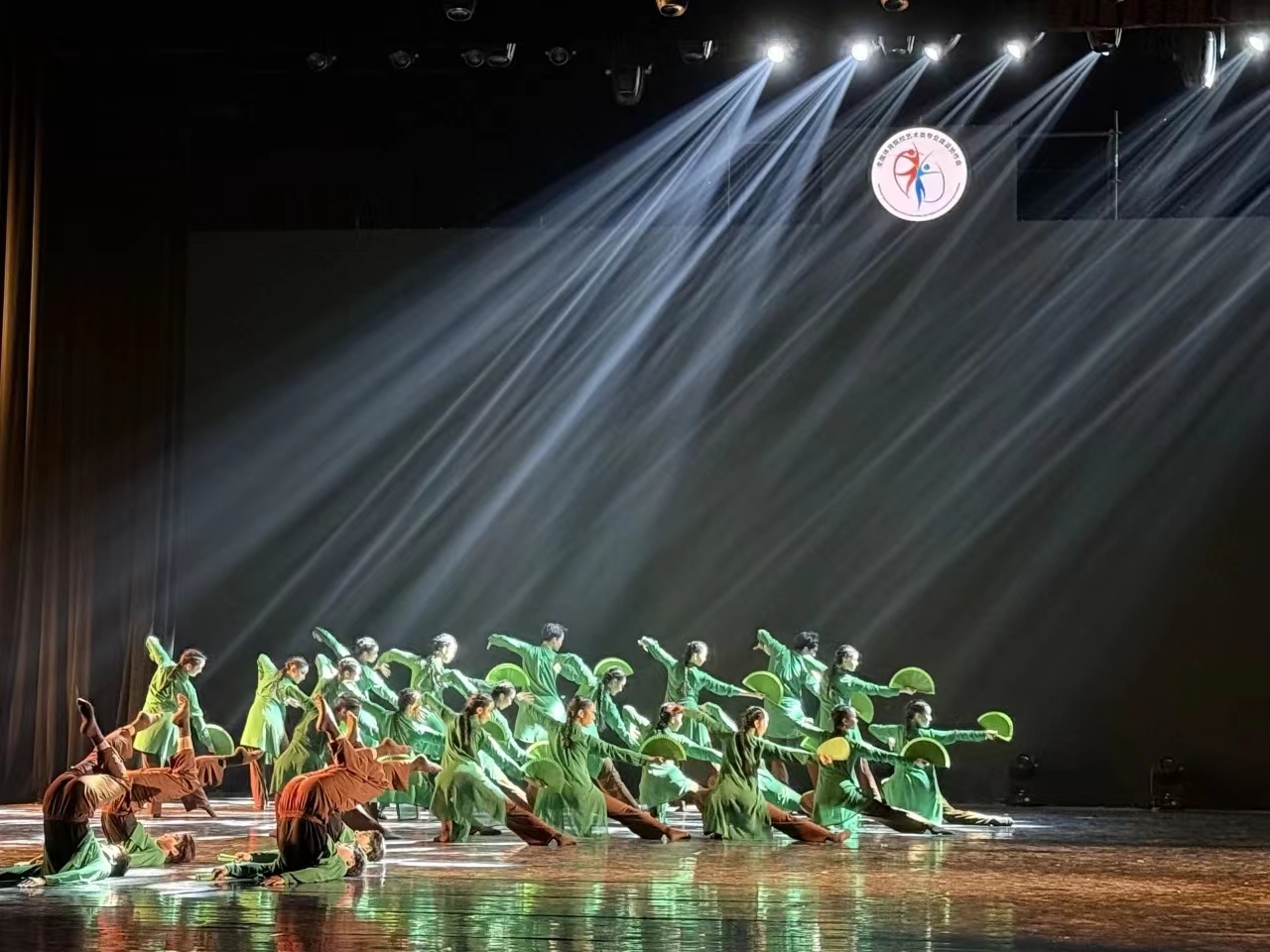 在本届体育艺术节上,威尼斯传媒与艺术学院(国际教育学院)副院长刘锦瑶担任领队,吴崟、窦荳、孙志远作为指导教师带领24名大学生参加展演。威尼斯舞蹈作品《松》,以“建安七子”刘桢的诗句“亭亭山上松,瑟瑟谷中风。风声一何盛,松枝一何劲!”为创作灵感,借青松之刚劲、明志向之坚贞,始太极之有形、归动静于无形,融合舞蹈、太极语汇,刻画出“松”岁寒不凋、坚毅高洁的品格。该作品立意深邃,威尼斯大学生的表演刚柔并济、气韵合一,赢得了专家和各参赛院校的一致好评,最终斩获中国舞项目金奖。