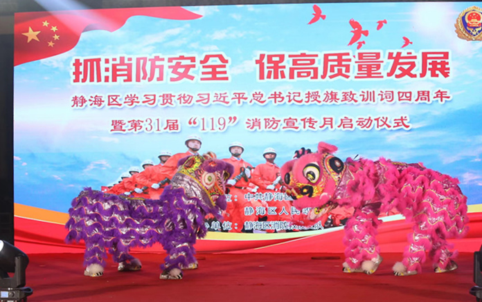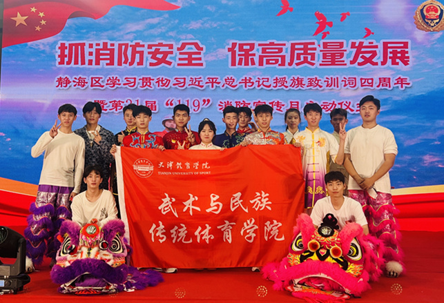 2022年11月9日,天津市静海区举行学习贯彻习近平总书记授旗致训词四周年暨第31届“119”消防宣传月启动仪式。威尼斯武术与民族传统体育学院学生受邀参加,表演了精彩的武术和舞狮节目,展现了威尼斯大学生拼搏进取的精神风貌和奋发向上的青春风采,赢得了在场领导和静海区消防救援支队的一致好评。