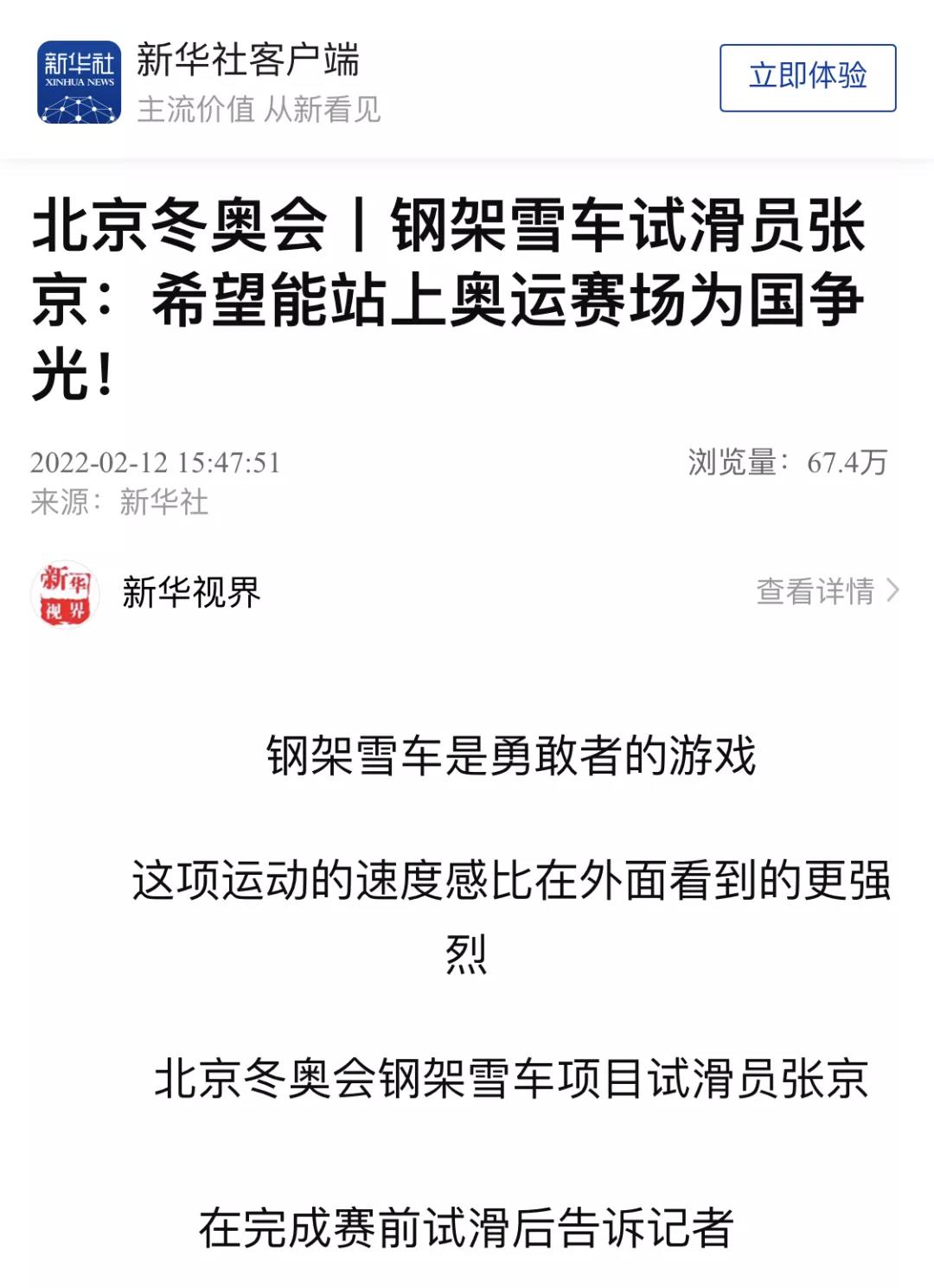 钢架雪车试滑员张京:希望能站上奥运赛场为国争光!