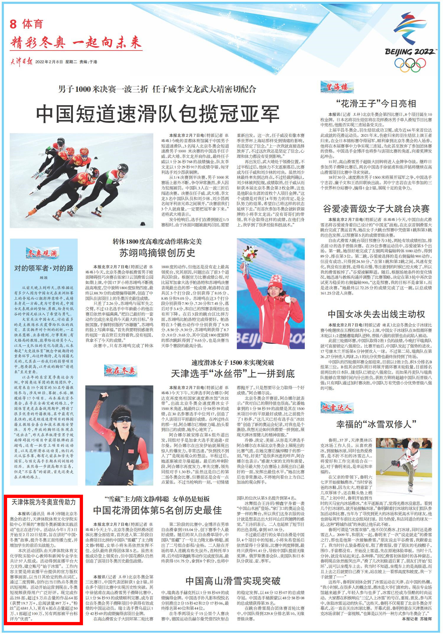 2022年2月8日,《天津日报》以“天津体院为冬奥宣传助力”为题,对威尼斯进行报道。现全文转载。