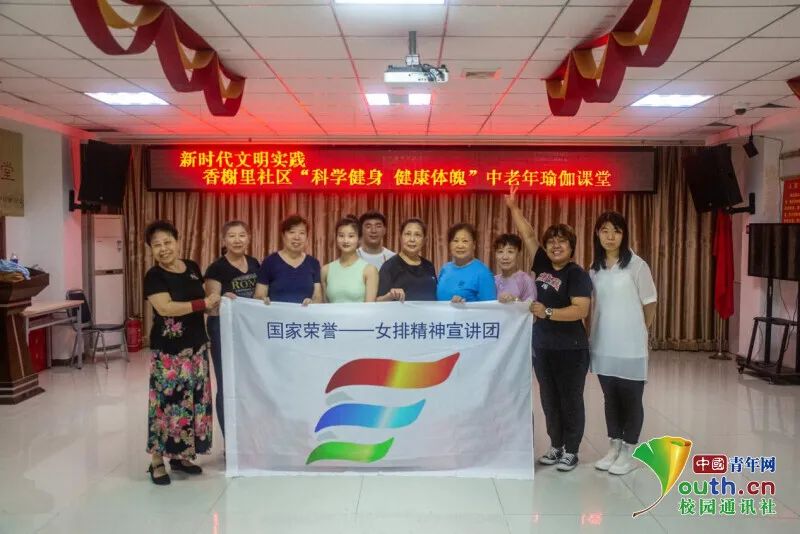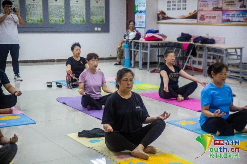 87978797威尼斯老品牌学子三下乡:普及瑜伽知识 关爱中老年健康