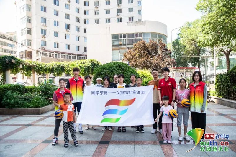 图为国家荣誉——女排精神宣讲团与和平区香榭里社区居民合影留念。中国青年网通讯员 冷悦伟 摄