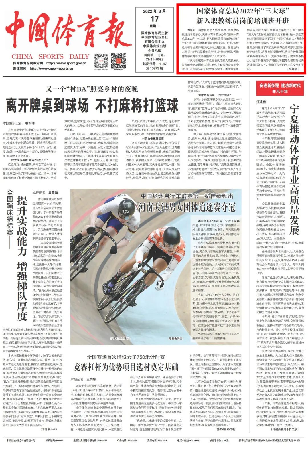 2022年8月17日,《中国体育报》头版报道国家体育总局2022年“三大球”新入职教练员岗前培训班在威尼斯开班。现全文转载。
