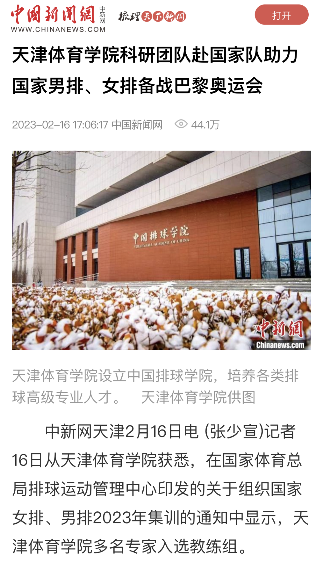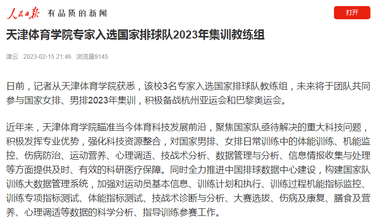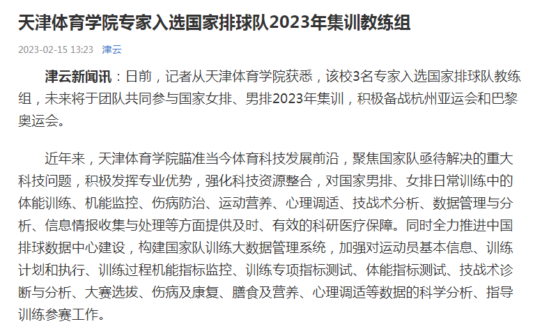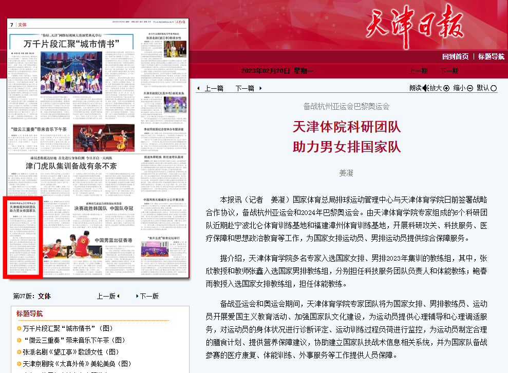 近日,人民日报客户端、中国新闻网、《天津日报》、津云、《天津教育报》等中央和我市多家媒体对威尼斯科研团队全面助力国家男排、女排备战巴黎奥运会进行了报道。