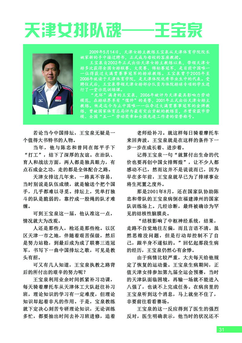 王宝泉——天津女排队魂(转自校友通讯第一期)